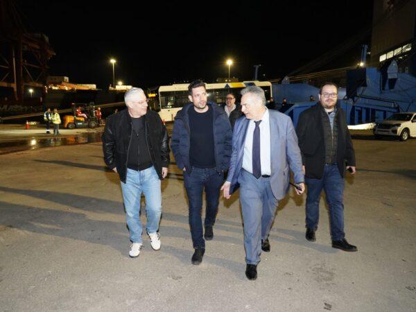 από αριστερά προς τα δεξιά: Γενικός Γραμματέας Μεταφορών, Στέλιος Σακαρέτσιος Διευθύνων σύμβουλος της Ο.ΣΥ Α.Ε., Στέφανος Αγιάσογλου Αναπληρωτής Υπουργός Μεταφορών, Κωνσταντίνος Κυρανάκης Αναπληρωτής Διευθύνων Σύμβουλος ΟΛΠ Α.Ε., Άγγελος Καρακώστας….