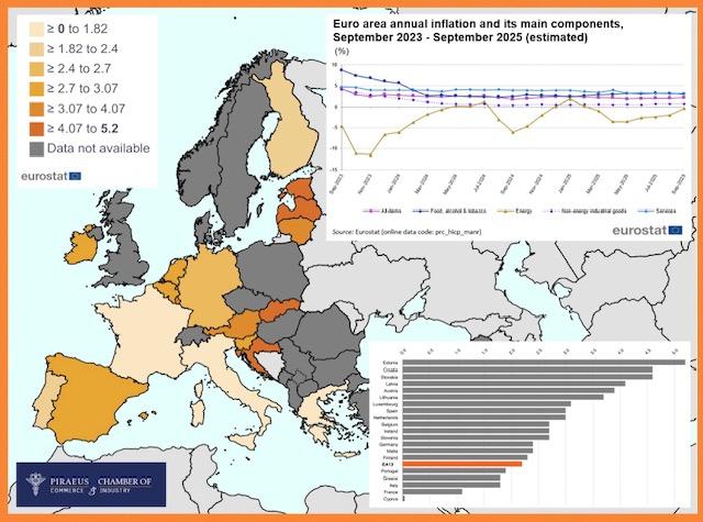 Ευχάριστη έκπληξη αποτελεί η μεγάλη πτώση που κατέγραψε τον Σεπτέμβριο ο πληθωρισμός στην Ελλάδα και μάλιστα στο εντυπωσιακό 1,8%, πολύ χαμηλότερα του ευρωπαϊκού μέσου όρου, σύμφωνα με τα προκαταρκτικά στοιχεία της Eurostat. Πρόκειται για τη χαμηλότερη τιμή που έχει καταγραφεί στην ευρωπαϊκή στατιστική υπηρεσία από τον Αύγουστο του 2021. Για πρώτη φορά μάλιστα από τον Μάιο η Ελλάδα εμφανίζει τιμή κάτω του 3%, και μάλιστα με σημαντική απόκλιση από την προηγούμενη μέτρηση που ήταν στο 3,1%, αλλά και από τον μέσο όρο της Ευρωζώνης. Σημαντική συμβολή φαίνεται να έπαιξε η αποκλιμάκωση στα τρόφιμα και τα μη αλκοολούχα ποτά, με -0,8% με τον μηνιαίο δείκτη να υποχωρεί στο 1,4%, καθώς και το ενεργειακό κόστος με τον δείκτη στο -3,7%. Η μεγάλη αποκλιμάκωση του πληθωρισμού που καταγράφηκε στην Ελλάδα στο 1,8% και μάλιστα με βάση τον εναρμονισμένο δείκτη τιμών καταναλωτή της Eurostat σε ετήσια βάση «προσπέρασε» τον μ.ο. της Ευρωζώνης, που αντιθέτως αυξήθηκε από 2% στο 2,2% τον Σεπτέμβριο. Ο πληθωρισμός στην Ελλάδα ήταν ο τρίτος χαμηλότερος στην Ευρωζώνη, μαζί με αυτόν της Ιταλίας, μετά την Κύπρο με 0% και την Γαλλία με 1,1%. Στην Ευρωζώνη, τη μεγαλύτερη συμβολή στον πληθωρισμό τον Σεπτέμβριο είχαν οι τιμές των υπηρεσιών με αύξηση 3,2% έναντι αύξησης 3,1% τον Αύγουστο, ακολουθούμενες από τις τιμές των τροφίμων, αλκοόλ και καπνού με αύξηση 3% έναντι αύξησης 3,2% των μη ενεργειακών βιομηχανικών προϊόντων με 0,8% όπως και τον Αύγουστο, ενώ οι τιμές ενέργειας μειώθηκαν 0,4% έναντι μείωσης 2% τον Αύγουστο. Η ΕΚΤ πιστεύει πως η πορεία πτώσης του πληθωρισμού έχει τελειώσει και αυτός είναι ο βασικός λόγος που διατήρησε τα επιτόκια αμετάβλητα για δεύτερη συνεχόμενη συνεδρίαση τον Σεπτέμβριο, ενώ έχει αποκλείσει μία ακόμα μείωση επιτοκίων μέχρι τον Δεκέμβριο, καθώς τηρεί στάση αναμονής για την ευρωπαϊκή οικονομία και πόσο ανθεκτική θα αποδειχθεί στις επιπτώσεις των δασμών από τις ΗΠΑ. Είναι σημαντικό για την ελληνική οικονομία, ο φθινοπωρινός εναρμονισμένος πληθωρισμός να παραμείνει σε χαμηλά επίπεδα τουλάχιστον μέχρι τέλος του έτους. Επίσης, θετική εξέλιξη στη πτώση του ΔΤΚ θα έχει και η συμφωνία του ΥΠΑΝ με τις αλυσίδες σούπερ μάρκετγια μείωση των τιμών σε 1.000 κωδικούς αγαθών, εντός του πρώτου δεκαπενθημέρου του Οκτωβρίου. Ζητούμενο είναι να διατηρήσουμε τον πληθωρισμό σε χαμηλά επίπεδα το φθινόπωρο και να αντιμετωπίσουμε την ακρίβεια καθ´όλη την διάρκεια του χειμώνα.