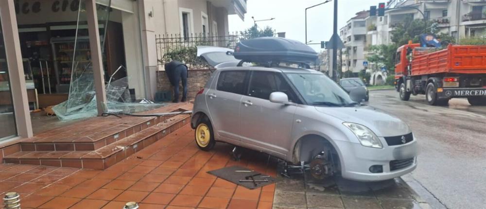 Αυτοκίνητο καρφώθηκε σε τζαμαρία φούρνου (Photos)
