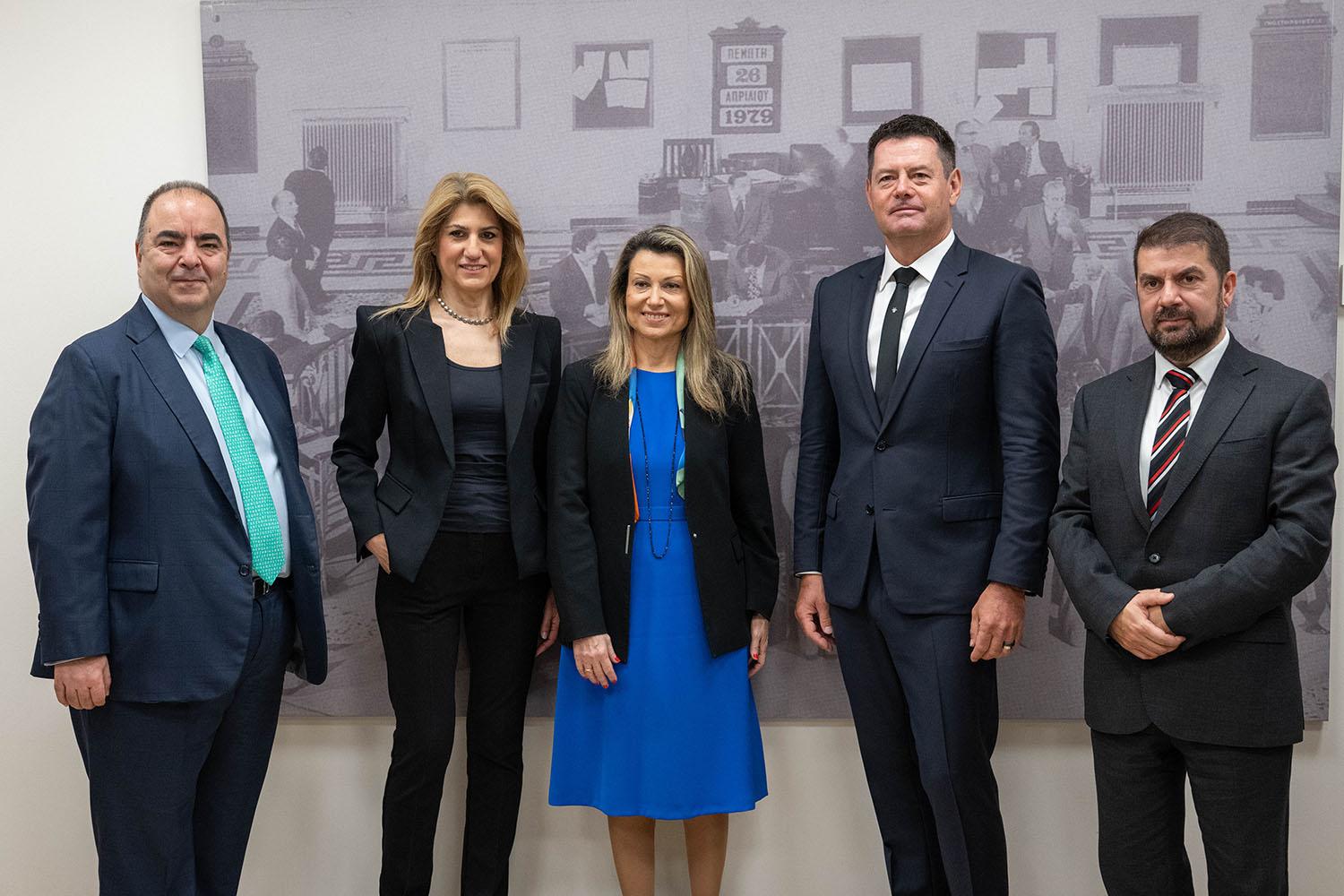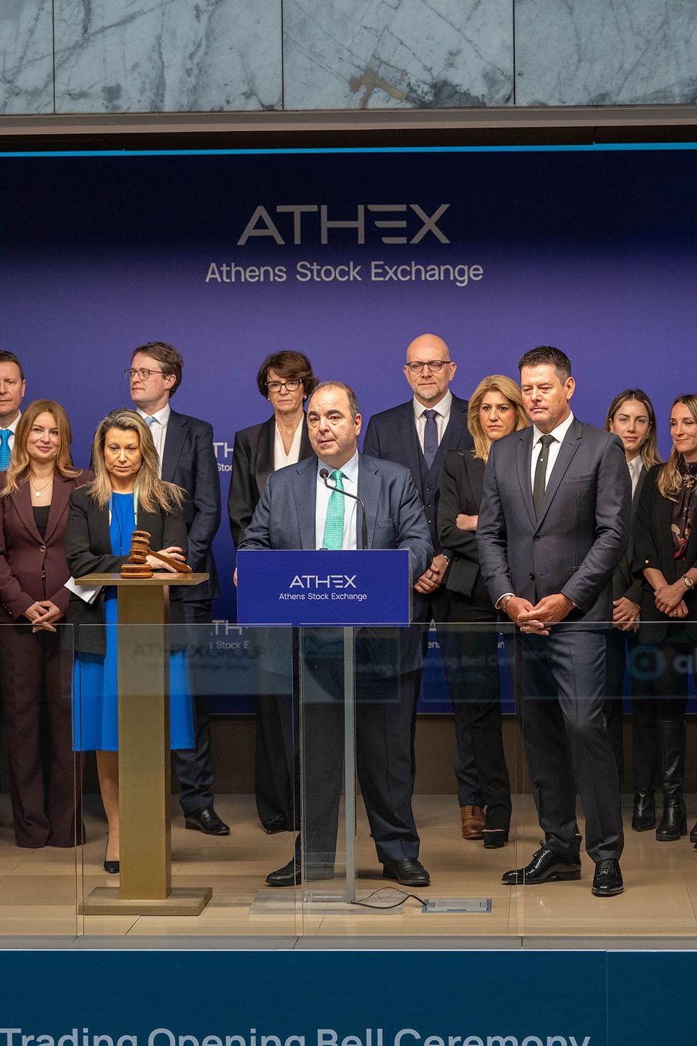 Ο Γιάννoς Κοντόπουλος, Διευθύνων Σύμβουλος του Ομίλου Χρηματιστηρίου Αθηνών, η Νατάσα Στάμου, Β’ Αντιπρόεδρος της Επιτροπής Κεφαλαιαγοράς, η Βασιλική Λαζαράκου, Πρόεδρος της Επιτροπής Κεφαλαιαγοράς,oKarel Komarek, Ιδρυτής και Πρόεδρος της Allwyn, και ο Μιχάλης Φέκκας, Α’ Αντιπρόεδρος της Επιτροπής Κεφαλαιαγοράς