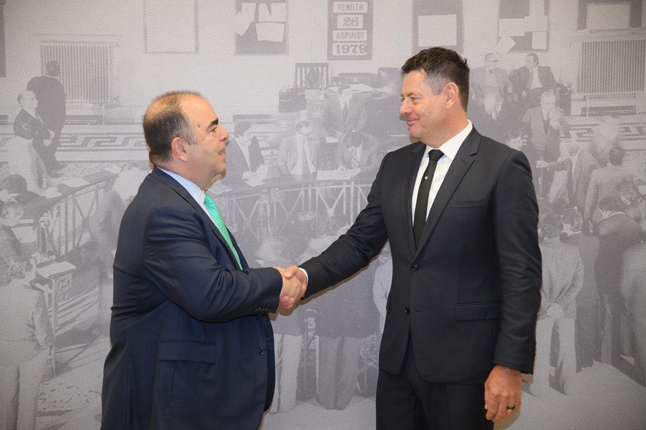 Ο Karel Komarek, Ιδρυτής και Πρόεδρος της Allwyn, με τον Αντώνη Βαρθολομαίο, Πρόεδρο της Επιτροπής Εποπτείας και Ελέγχου Παιγνίων