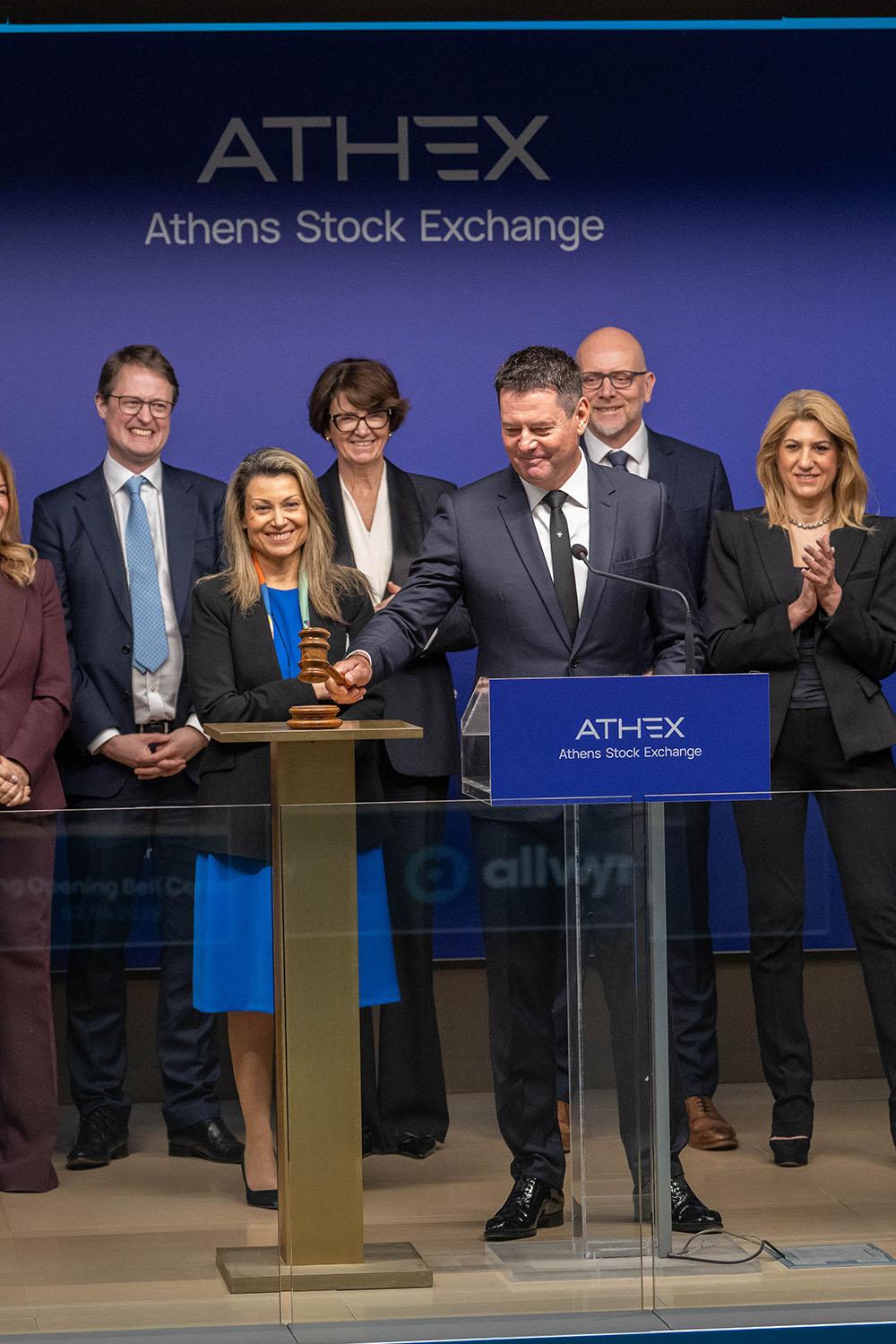 Η τελετή έναρξης της συνεδρίασης είναι μια μακρόχρονη παράδοση του ΧΑ για τον εορτασμό ορόσημων της αγοράς και εταιρικών εξελίξεων, συμπεριλαμβανομένης της έναρξης διαπραγμάτευσης μετοχών και άλλων σημαντικών γεγονότων. Στο πλαίσιο αυτό, στην τελετή παρευρέθηκαν ο Karel Komarek, Ιδρυτής και Πρόεδρος της Allwyn, ο οποίος απηύθυνε χαιρετισμό εκ μέρους της εταιρείας, και ηγετικά στελέχη της Allwyn AG και της Allwyn Ελλάδος. Χαιρετισμό απηύθυναν, επίσης, ο κ. Γιάννος Κοντόπουλος, Διευθύνων Σύμβουλος του Ομίλου Χρηματιστηρίου Αθηνών, και η Βασιλική Λαζαράκου, Πρόεδρος της Επιτροπής Κεφαλαιαγοράς.